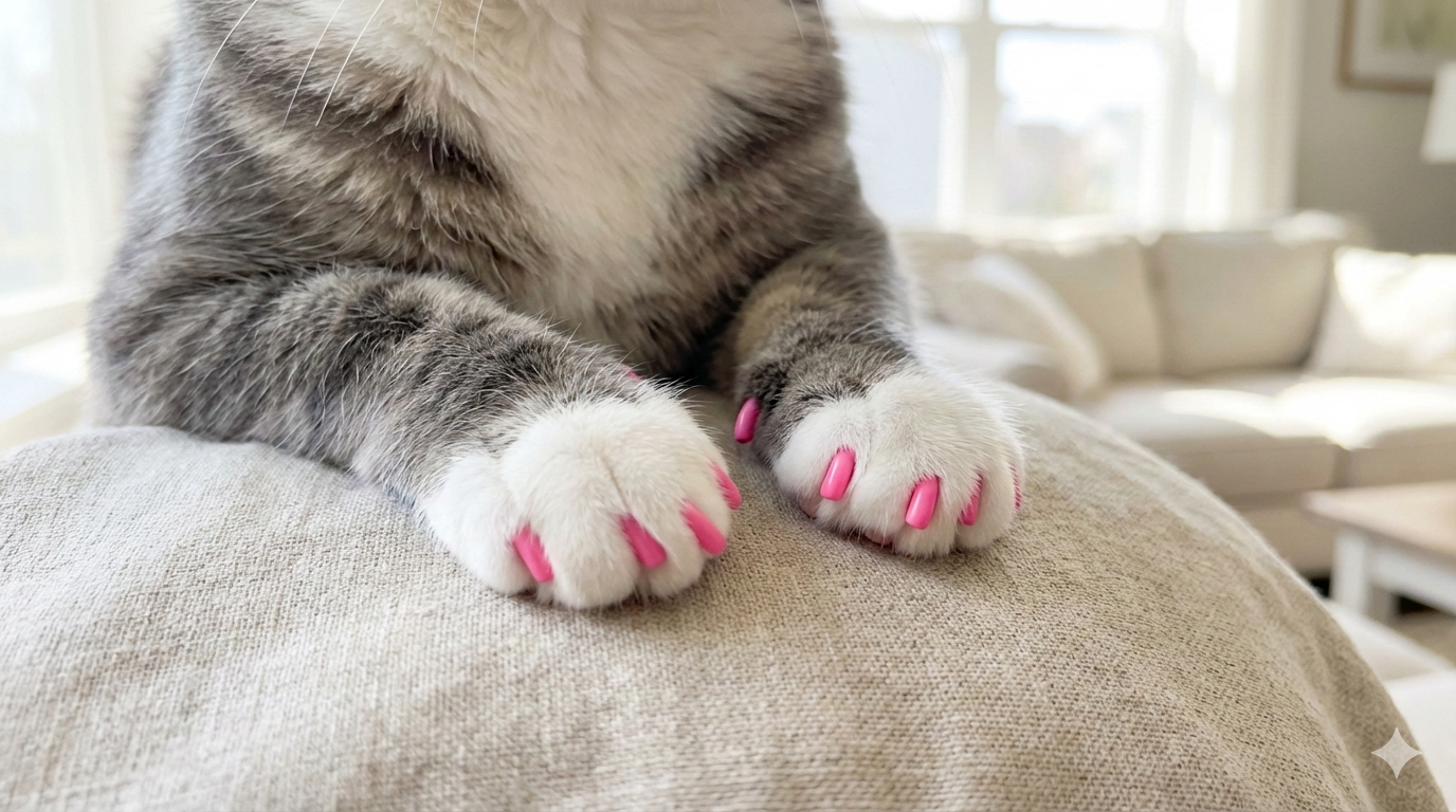 The Process: We trim your cat's nails to the ideal length, apply a tiny drop of adhesive, and gently press the cap onto each claw. It takes about 10 minutes and your cat barely notices.